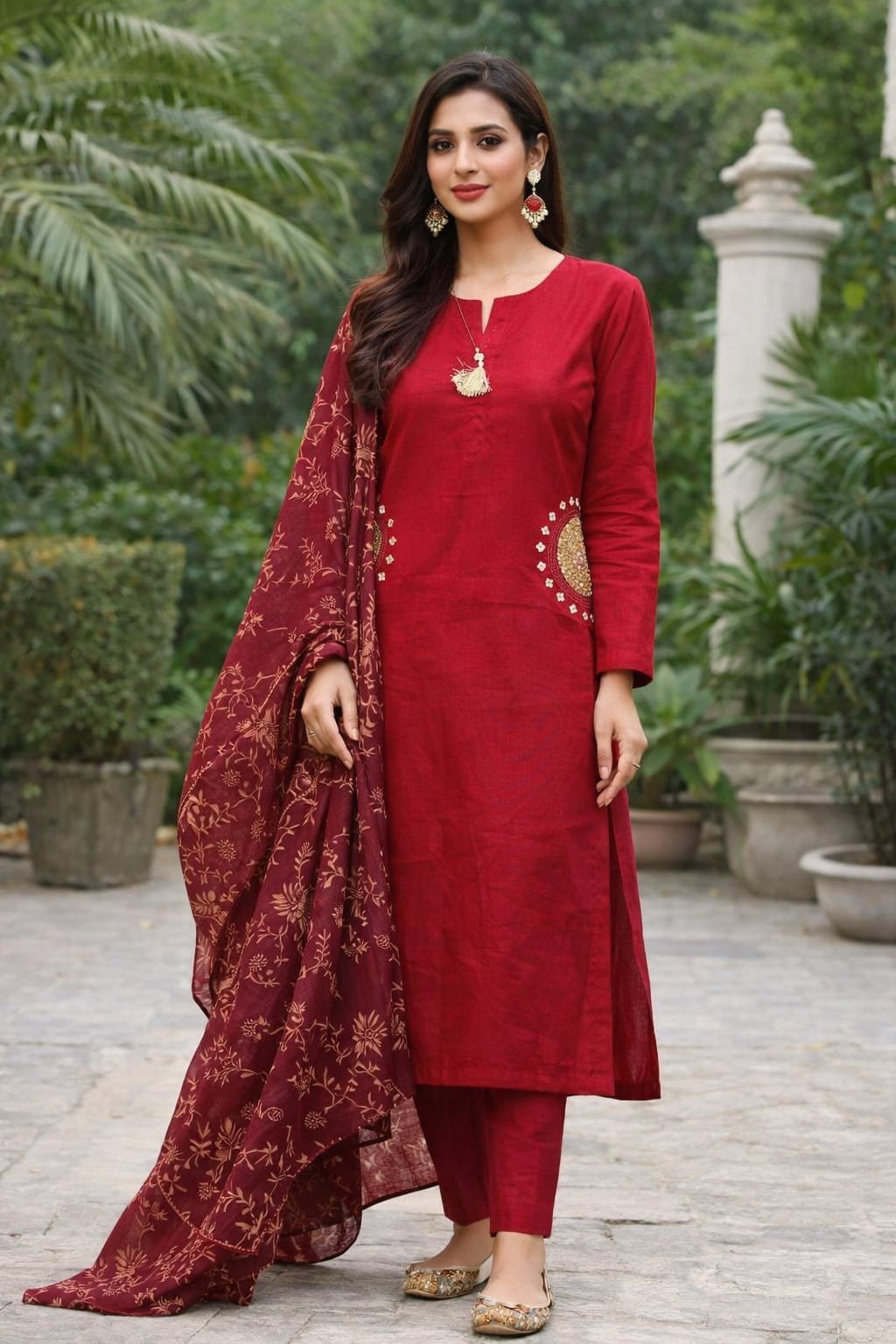 • Dupatta: Printed chiffon dupatta with an elegant traditional design