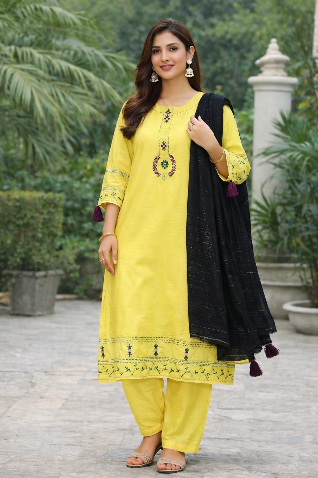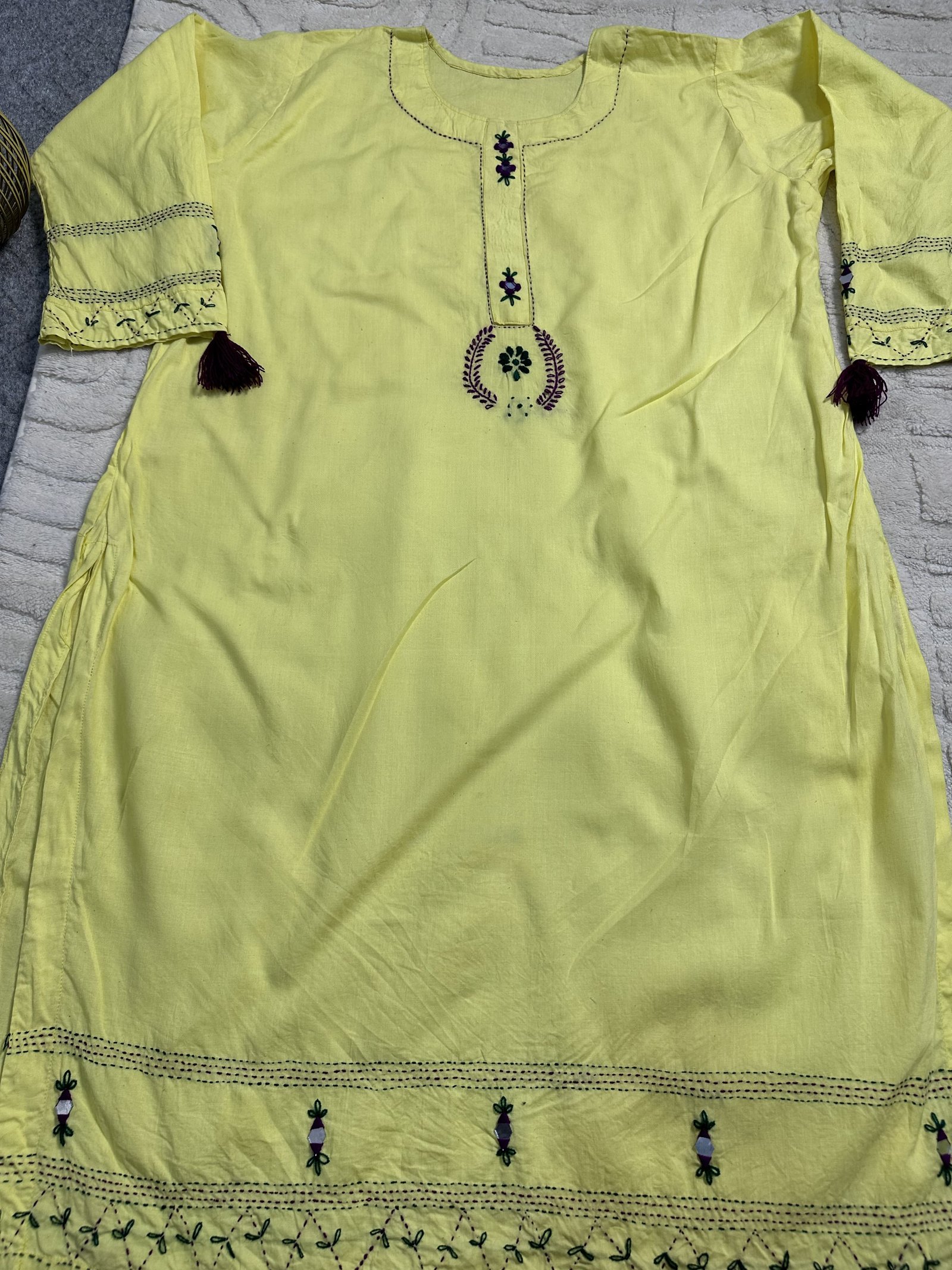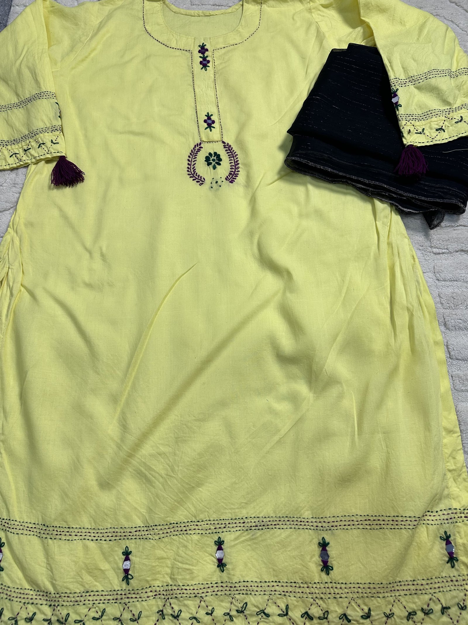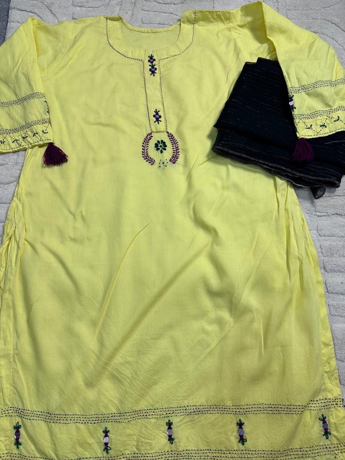 • Shirt: Premium soft cotton/lawn shirt with delicate floral embroidery on the front and sleeves.
