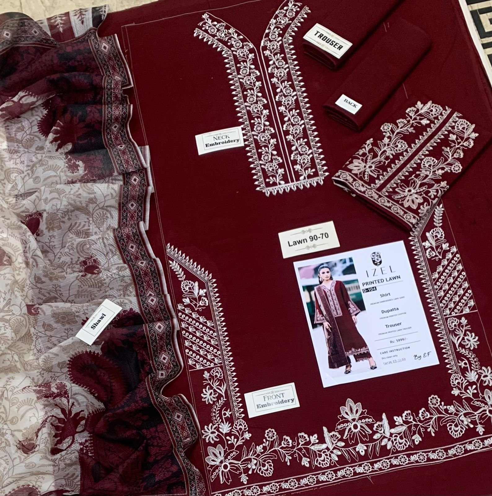 1 Embroidered Lawn Trouser