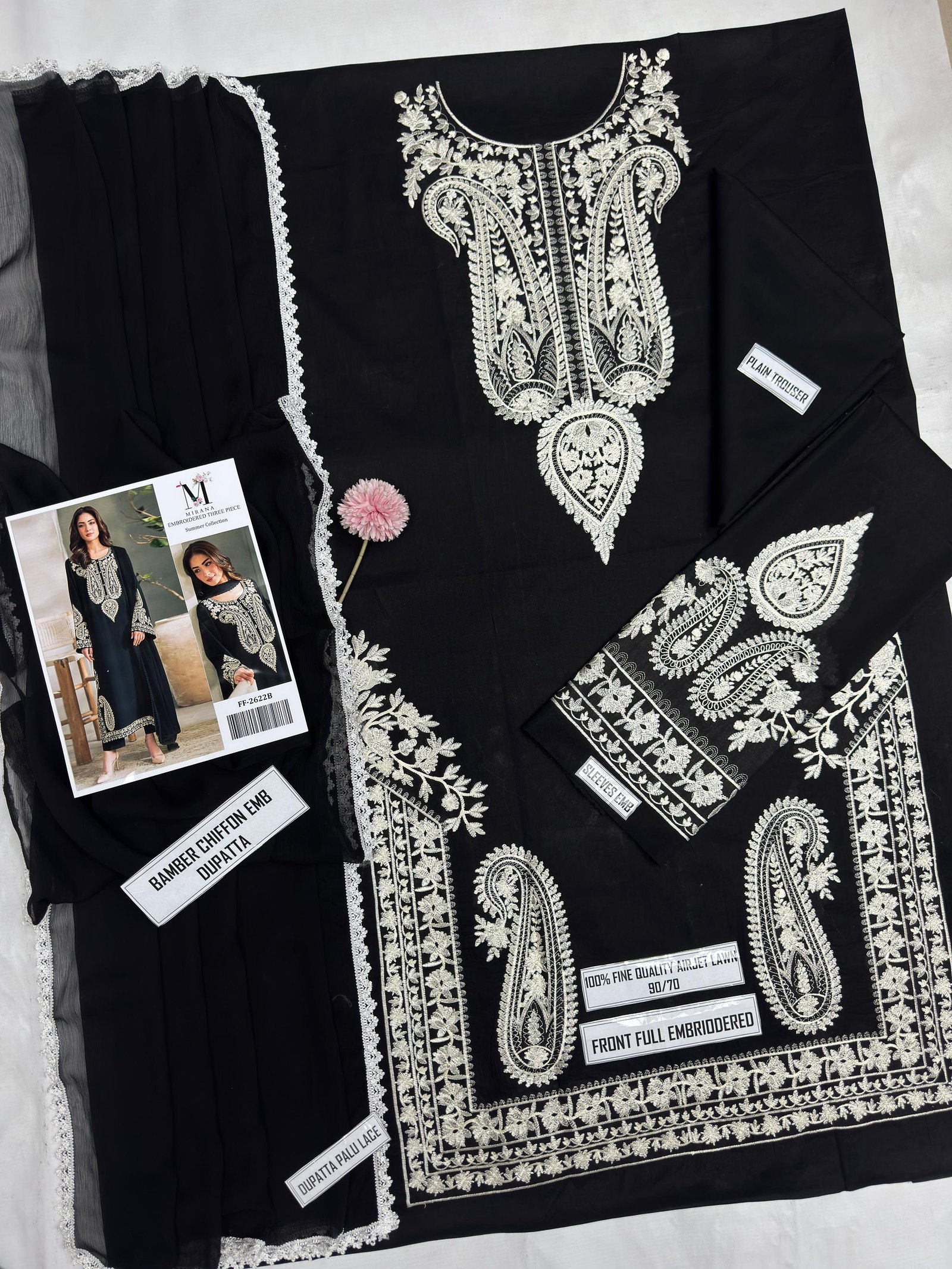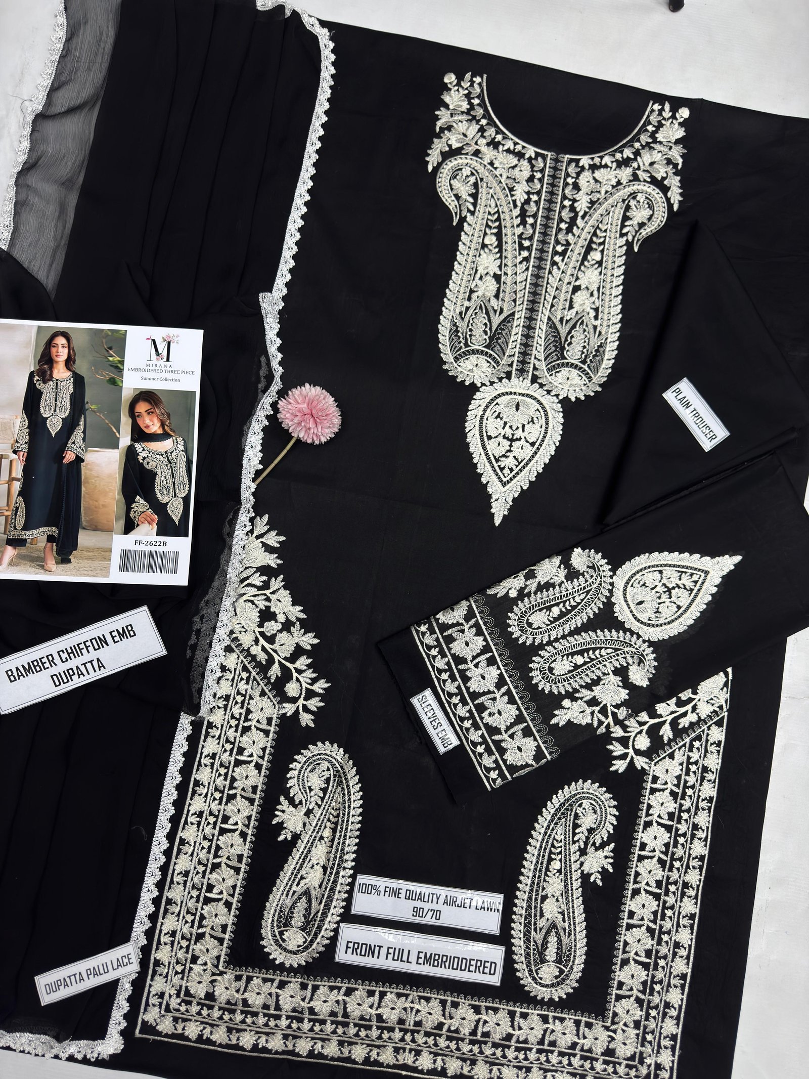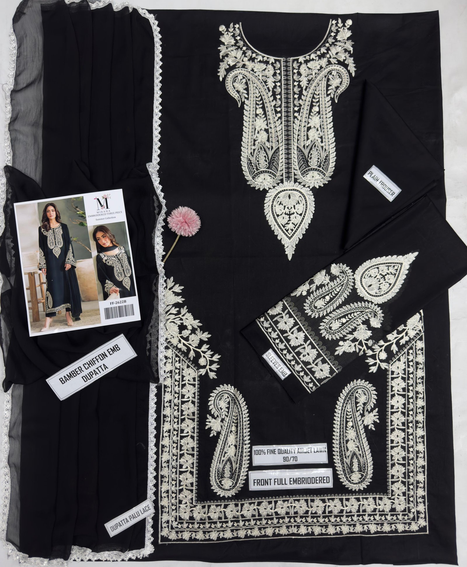 Premium Pure Airjet Lawn shirt with full heavy thread embroidery on front and heavy embroidered sleeves (full length) for a stylish and luxurious look.