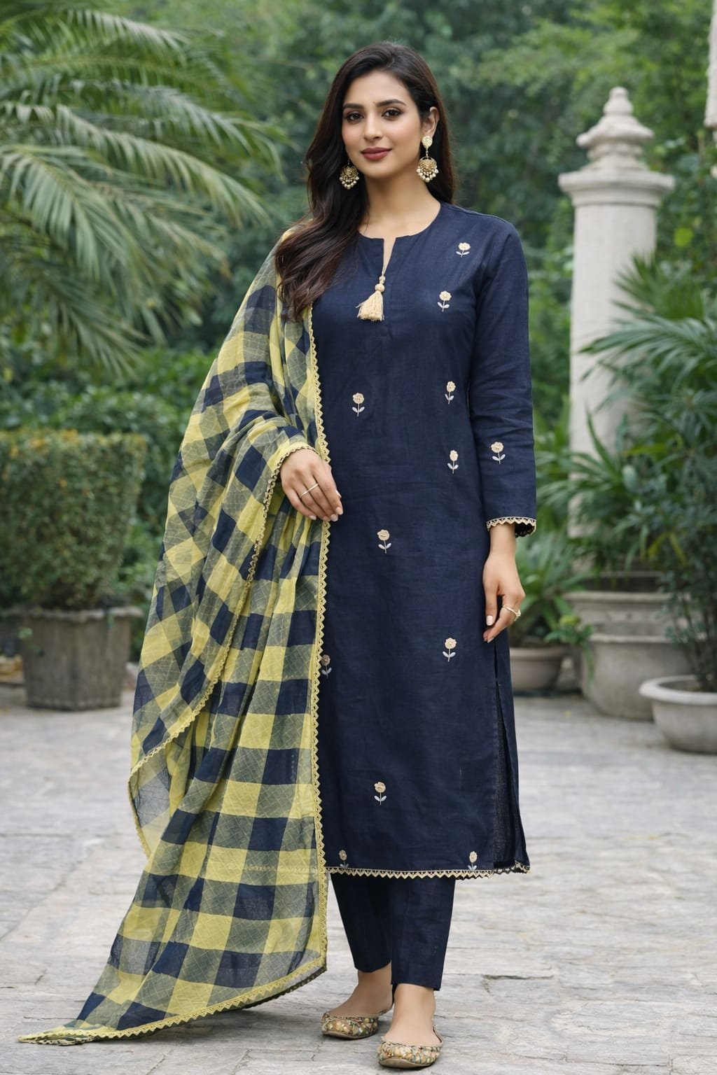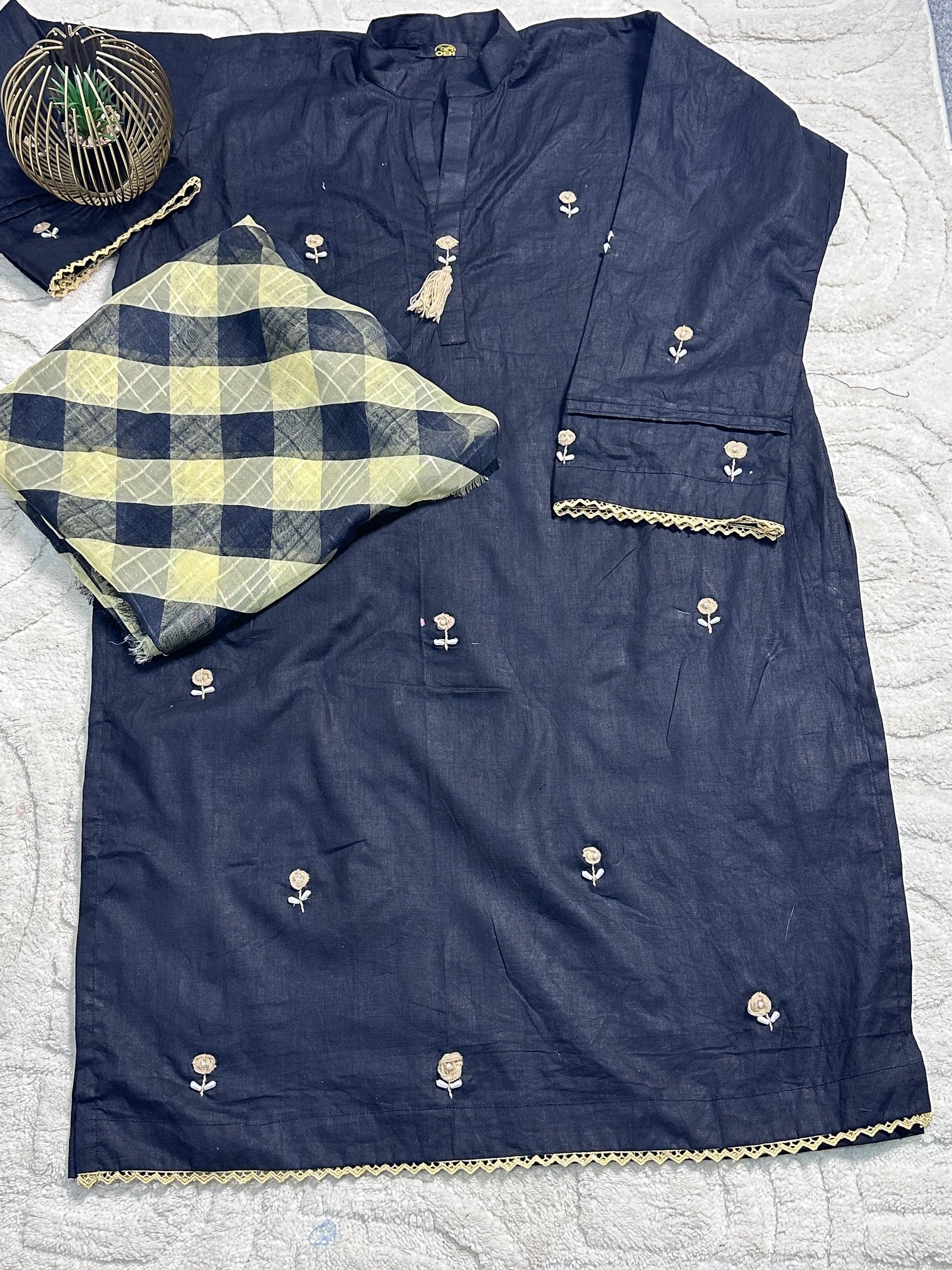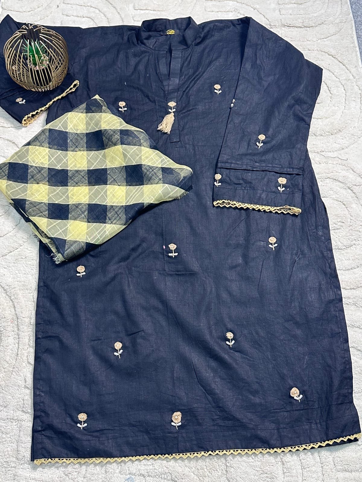 • Shirt: Premium soft cotton/lawn shirt with delicate floral embroidery on the front and sleeves
