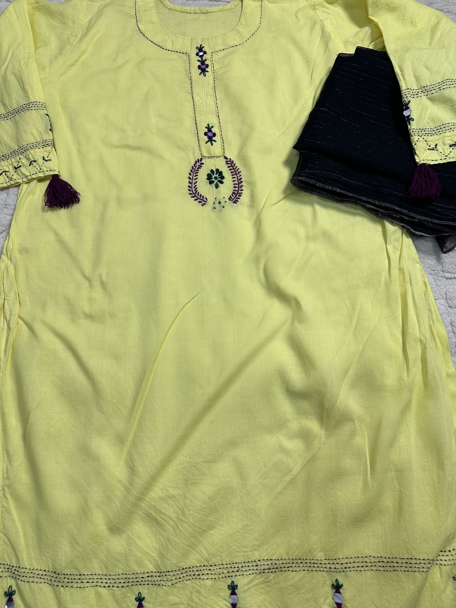 • Shirt: Premium soft cotton/lawn shirt with delicate floral embroidery on the front and sleeves.