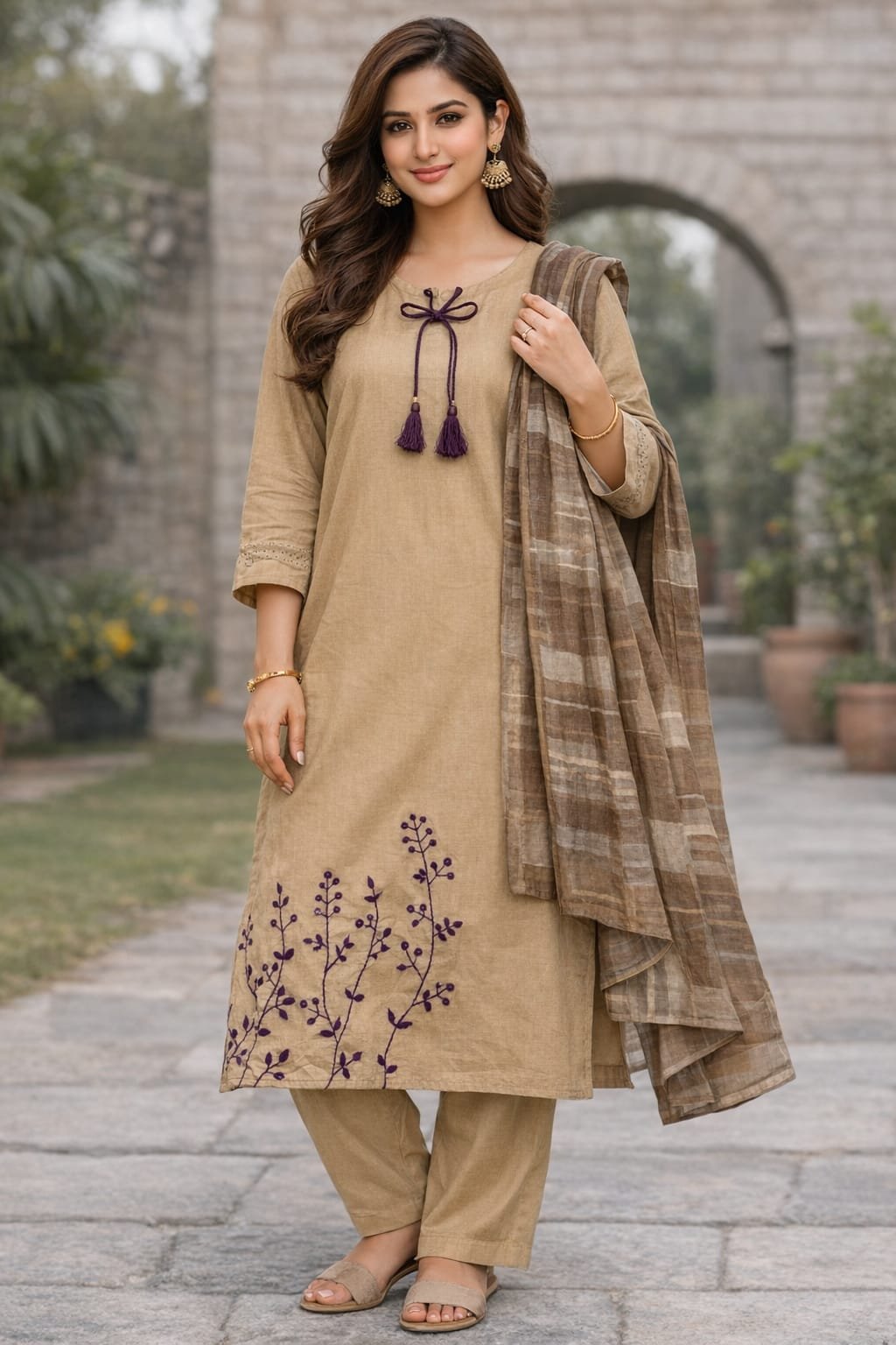 • Shirt: Premium soft cotton/lawn shirt with delicate floral embroidery on the front and sleeves