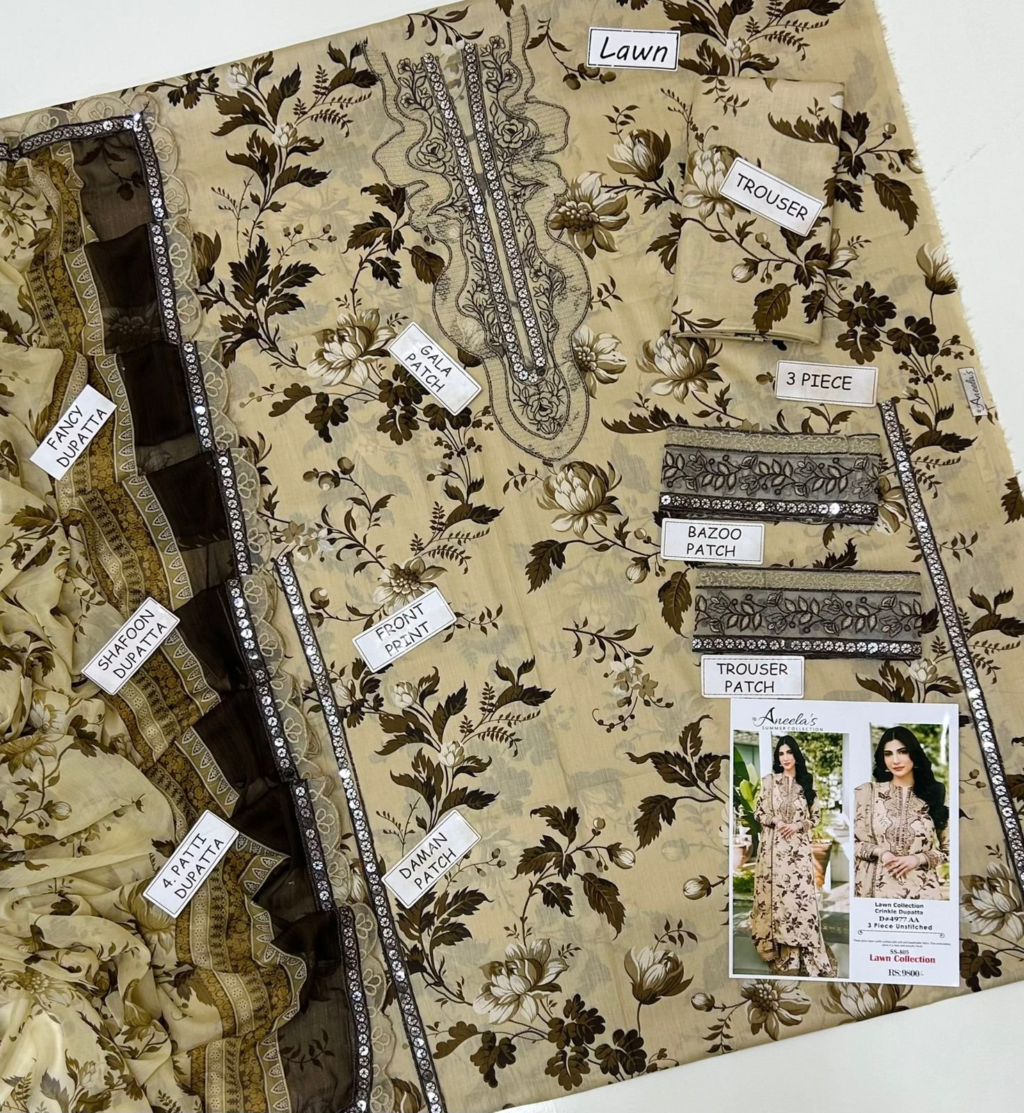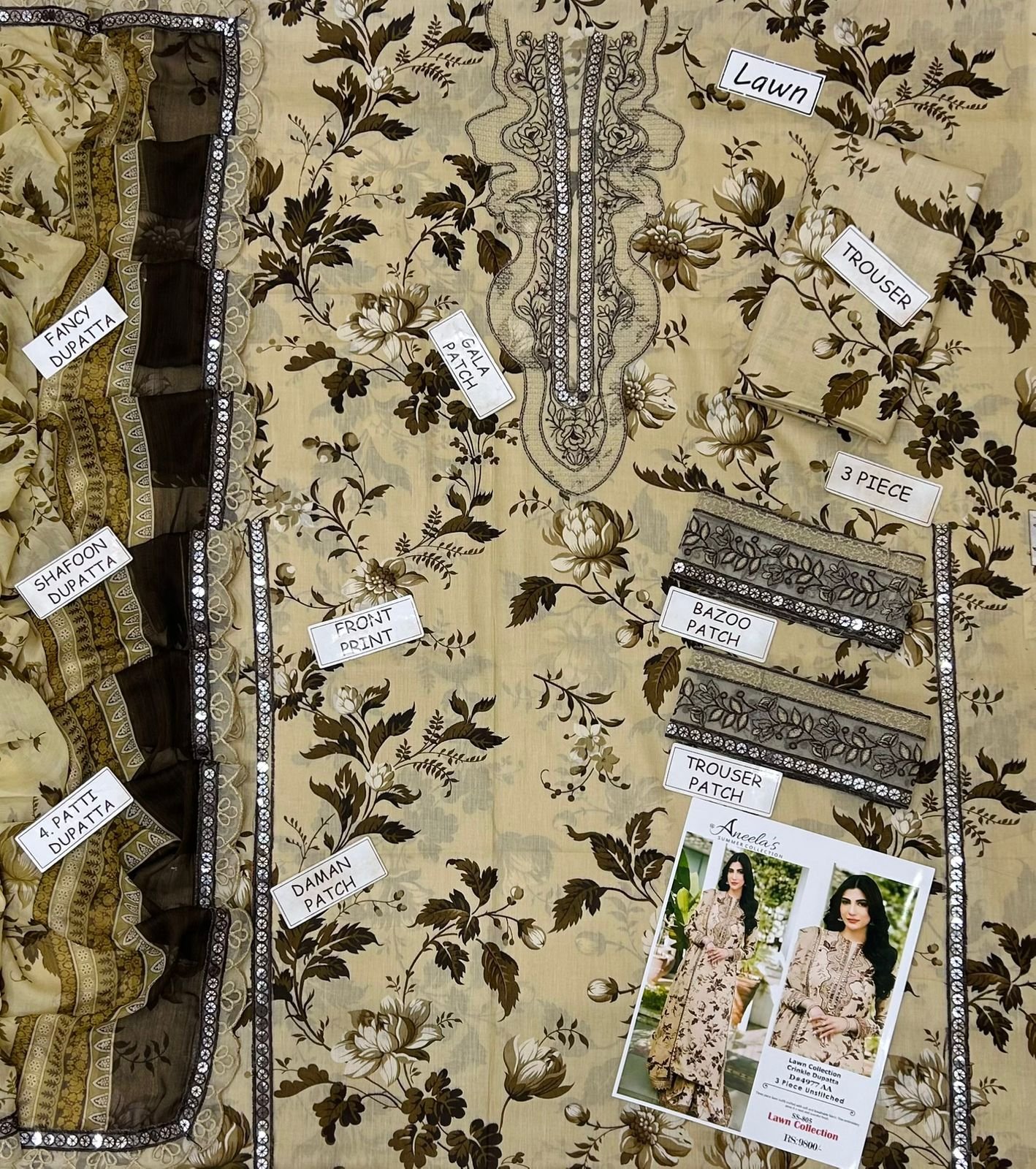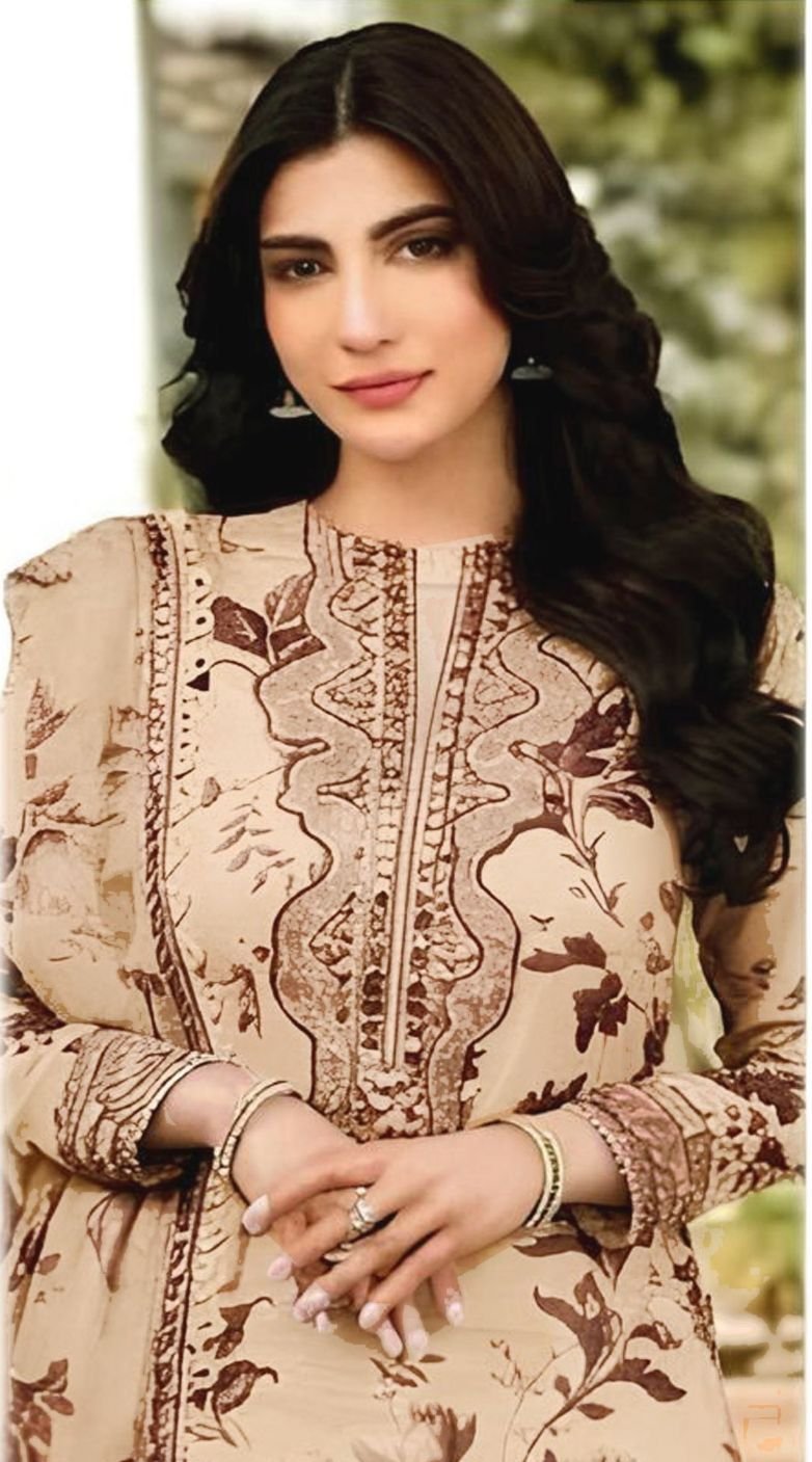 Chiffon Dupatta – Digital Printed with 4 Side 9mm Sequence Embroidery Patti