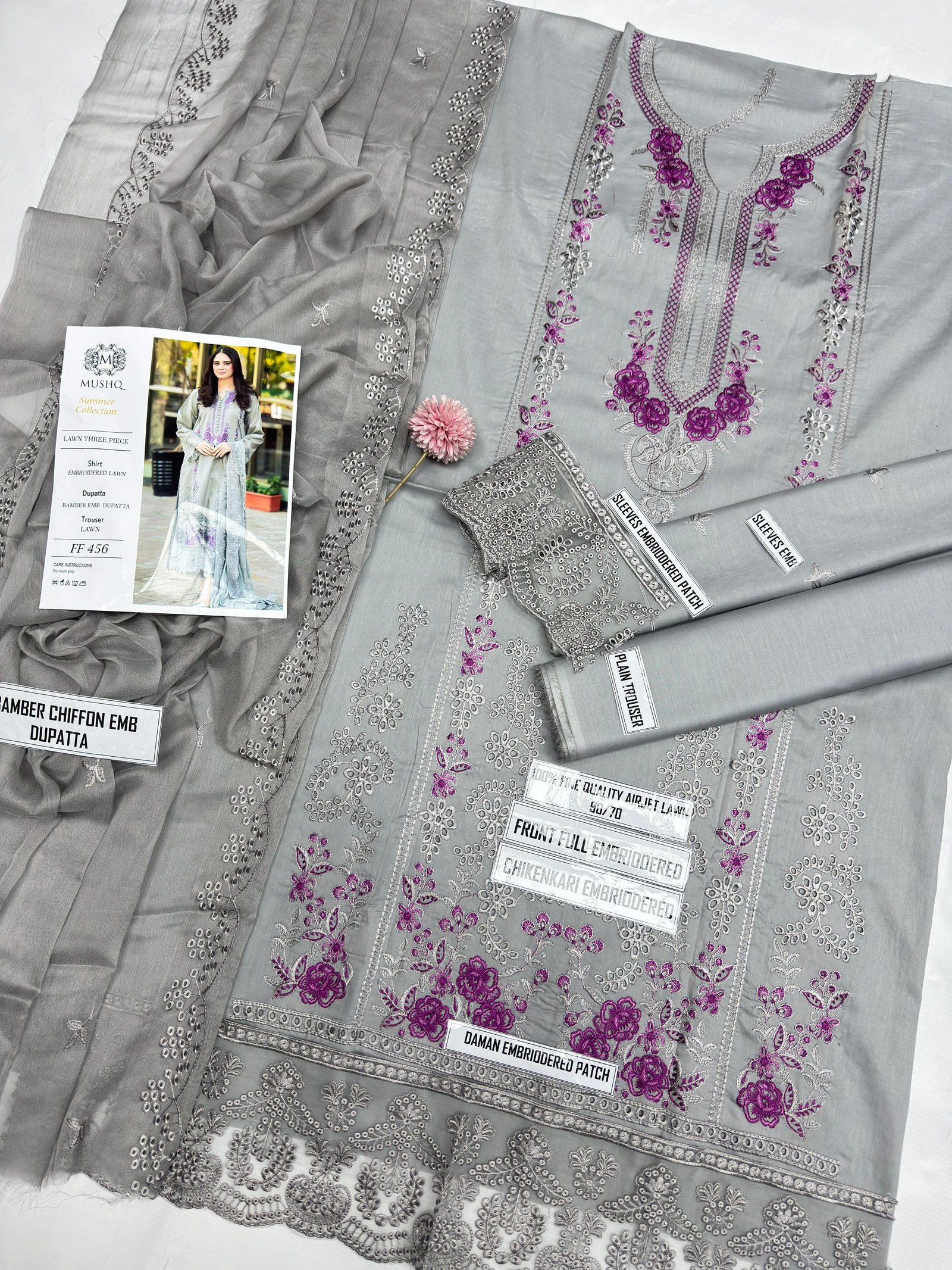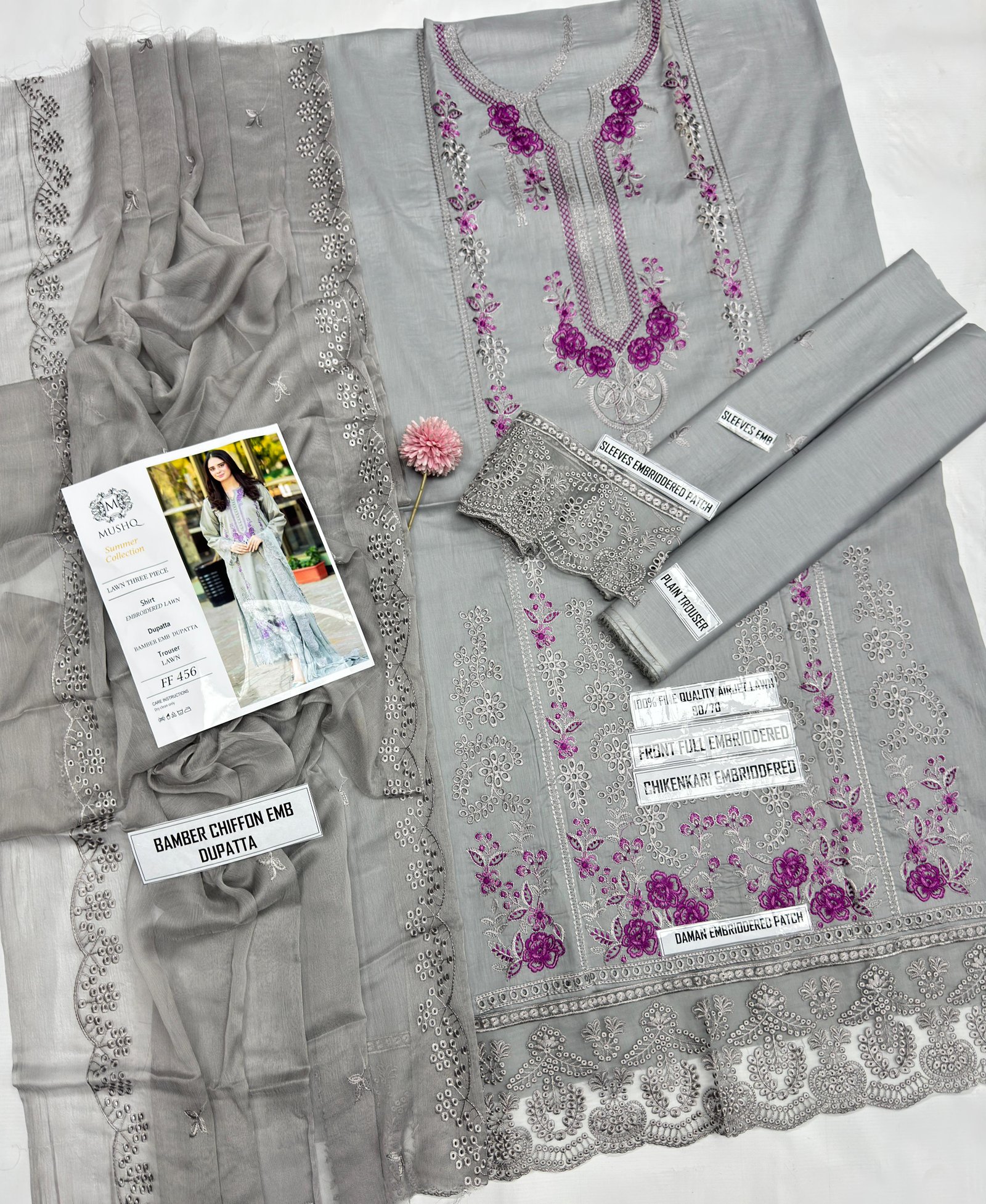 Bamber Chiffon Embroidered Dupatta with Chikankari Work